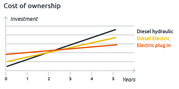 ◆ Connected directly to the mains supply energy savings can be approximately 70% when compared to a diesel/hydraulic model.